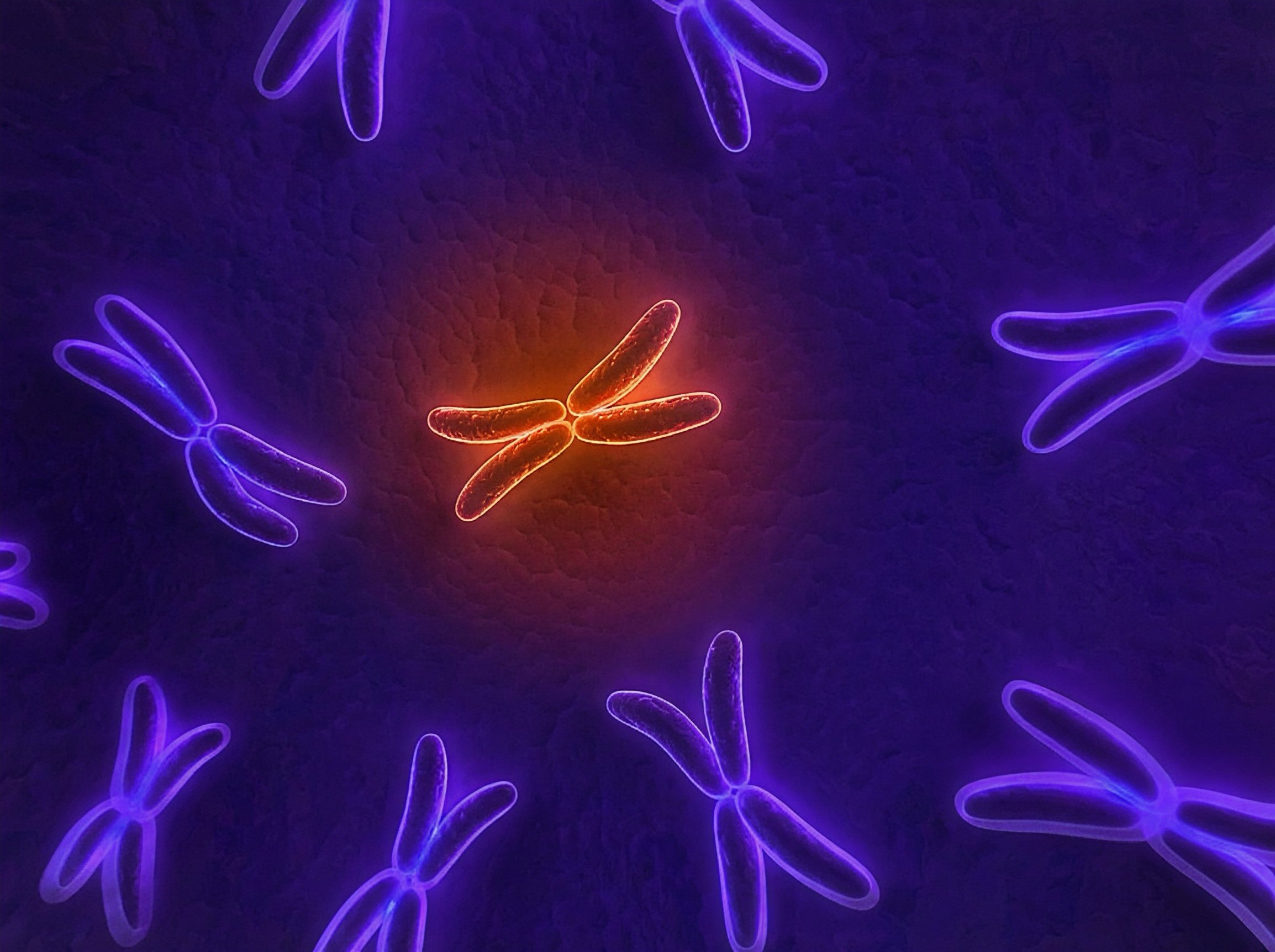 四倍体(4n=92)比三倍体少见,很少存活至胚胎发育的2~3周。胚胎组织中的四倍体应与在临床上少见的、羊水中发现的无关紧要的四倍体细胞区分开来,后者的基础是多核合体滋养细胞。活产的四倍体是存在的,但很罕见57,实际上常常是二倍体/四倍体嵌合型。分子研究表明,起源可能是细胞质分裂的失败,导致92,XXXX和92,XXYY。